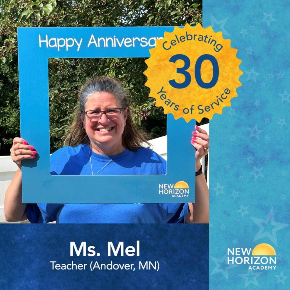Ms. Mel, one of our wonderful teachers at our Andover school, is celebrating 30 years with New Horizon Academy! Thank you for making a difference each and every day in the lives of our youngest learners. Happy anniversary!